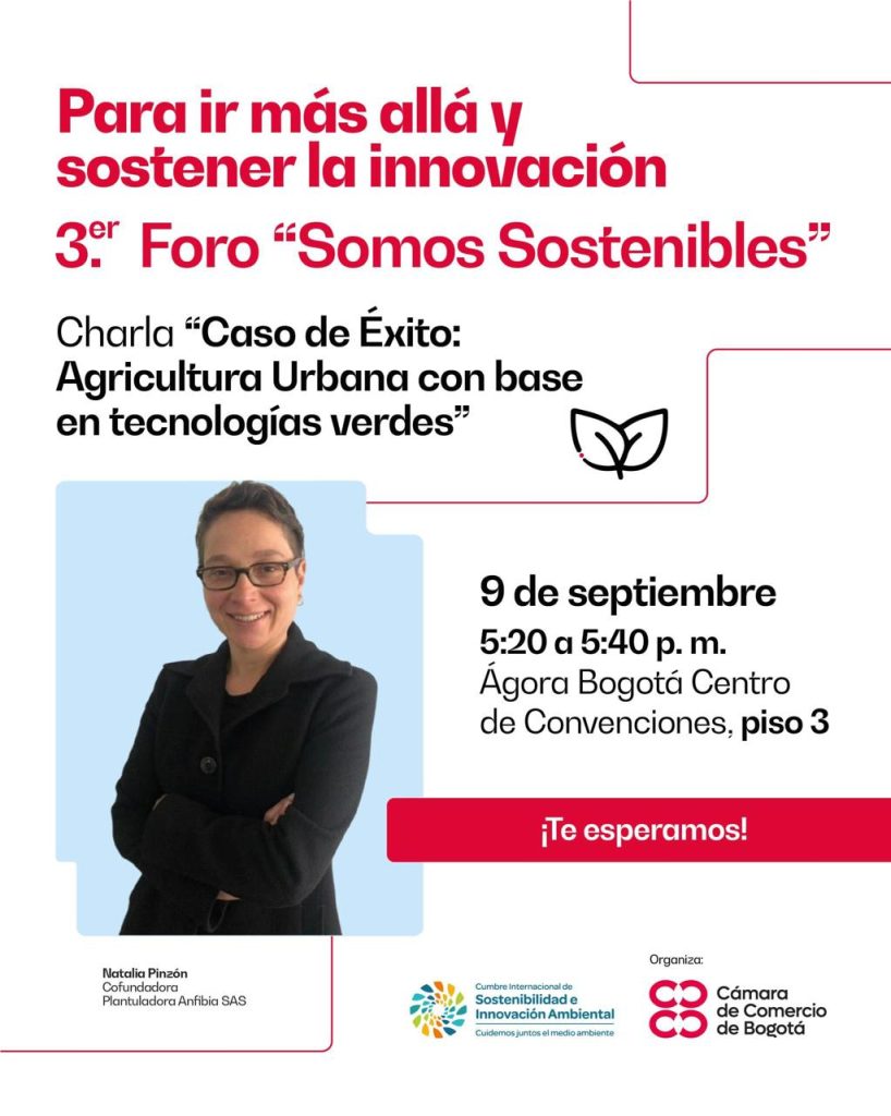 Este 9 de septiembre participaremos en la charla “Casos de Éxito: Agricultura Urbana con Base en Tecnologías Verdes” donde compartiremos nuestra historia y camino de emprendimiento hacia una nueva forma de agricultura en Bogotá.